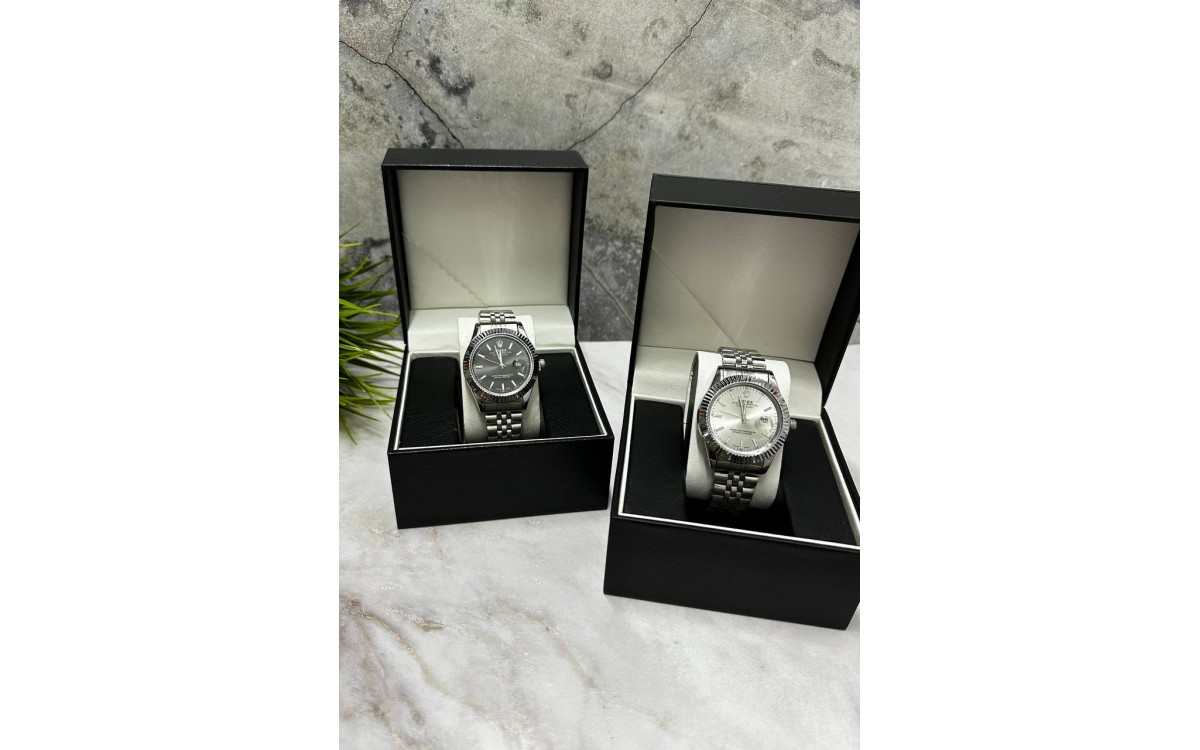 Данная модель представлена в четырех расцветках: серебро с черным циферблатом, серебро с белым циферблатом, комбинированные с золотым циферблатом, комбинированные с черным циферблатом. Расцветки можно увидеть на фото.
